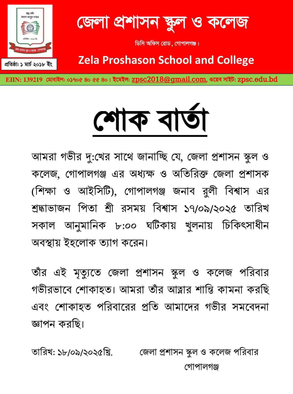 শোকবার্তা